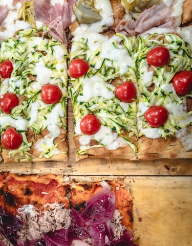La Pizza in teglia con idratazione all’80% (pre-fermento Biga) garantisce un prodotto finale altamente digeribile, unico per fragranza aroma e leggerezza.